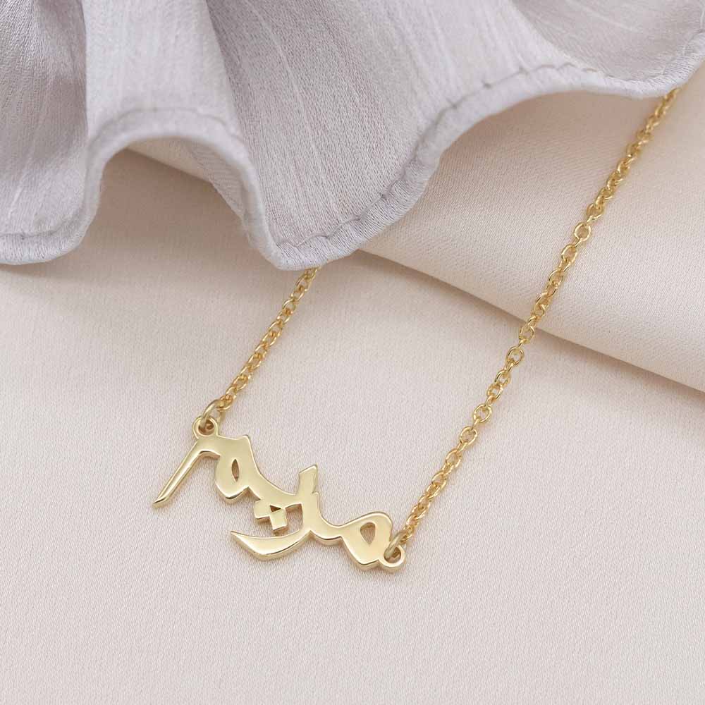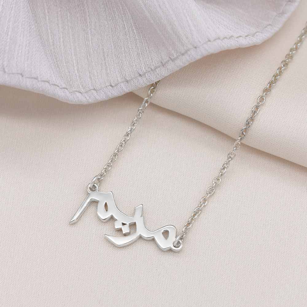Arabic names are carefully chosen to embrace desirable qualities. A Silvery Arabic Name Necklace celebrates your given name and heritage. This statement necklace is ethically handcrafted in 925 Sterling Silver by our skilled jewellers in South Africa.