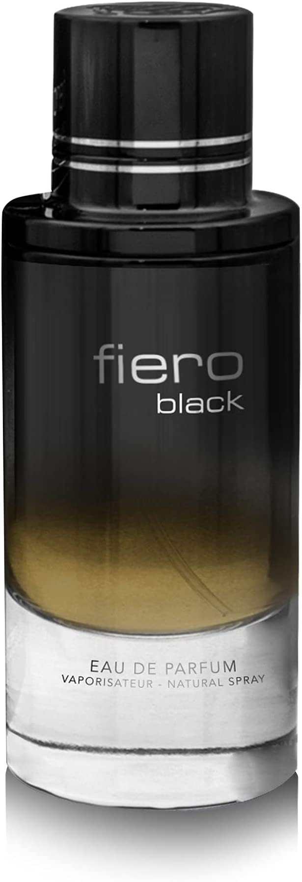 Fiero Black Eau de Parfum By Fragrance World Its Woody And Aromatic Fragrance For Men Is Our Own Creation. This bold scent helps you make a clear fashion statement wherever you are, to ensure you are always at the top your game. A hymn to freedom, brutal and noble at the same time. The aroma captures the fruity freshness of bergamot.